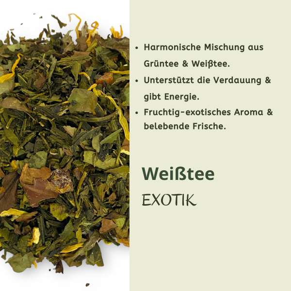 Das AY Natural 5er Probierset “Magische Teereise” enthält die Teesorten Japan Sencha, Earl Grey Deluxe Lady Star, Exotik, Ingwer-Orange-Zimt und Schokotraum, jeweils in 20 Gramm. Japan Sencha fördert die Konzentration, Earl Grey Deluxe erfrischt, Exotik bietet fruchtige Vielfalt, und Ingwer-Orange-Zimt stärkt das Immunsystem. Eine perfekte Auswahl für abwechslungsreiche Teegenüsse!